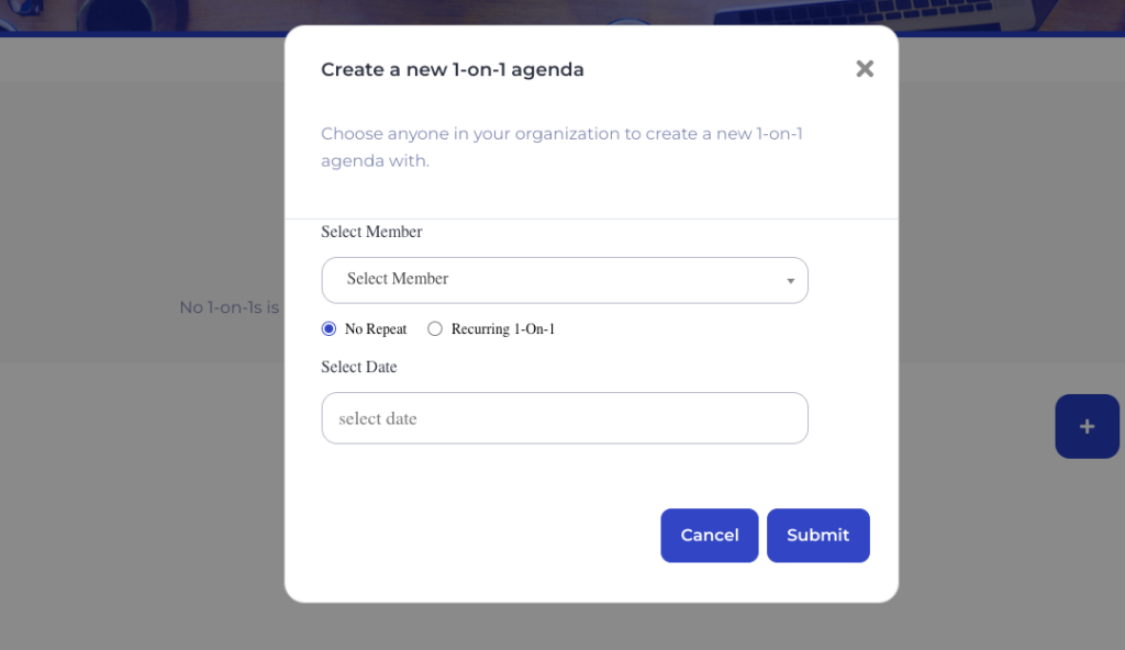 Select Member: Within this field, you need to select a member/user with whom you will have the 1-on-1 with.