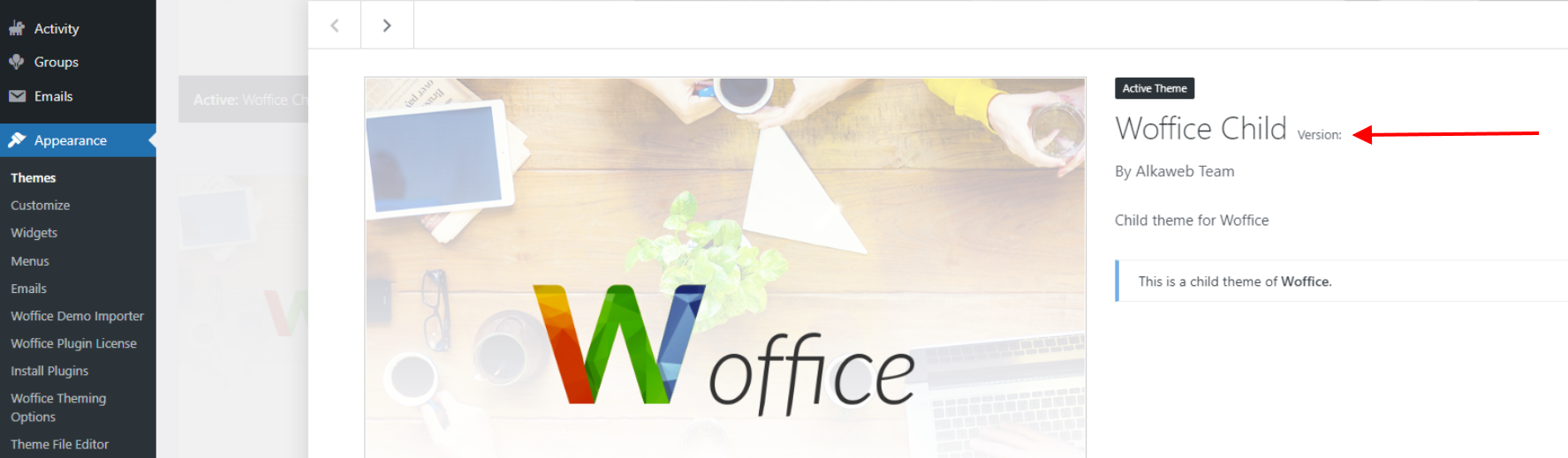 You can edit all the child theme’s details by editing the woffice-child/style.css‘s header. Like the author team, image, copyright, and so on. It can be very useful if you leave the theme to a customer and want to add some value to your work easily. Your integration would look more professional.