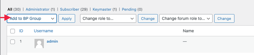 Within the “Bulk Actions” select “Add to BP Group”.
