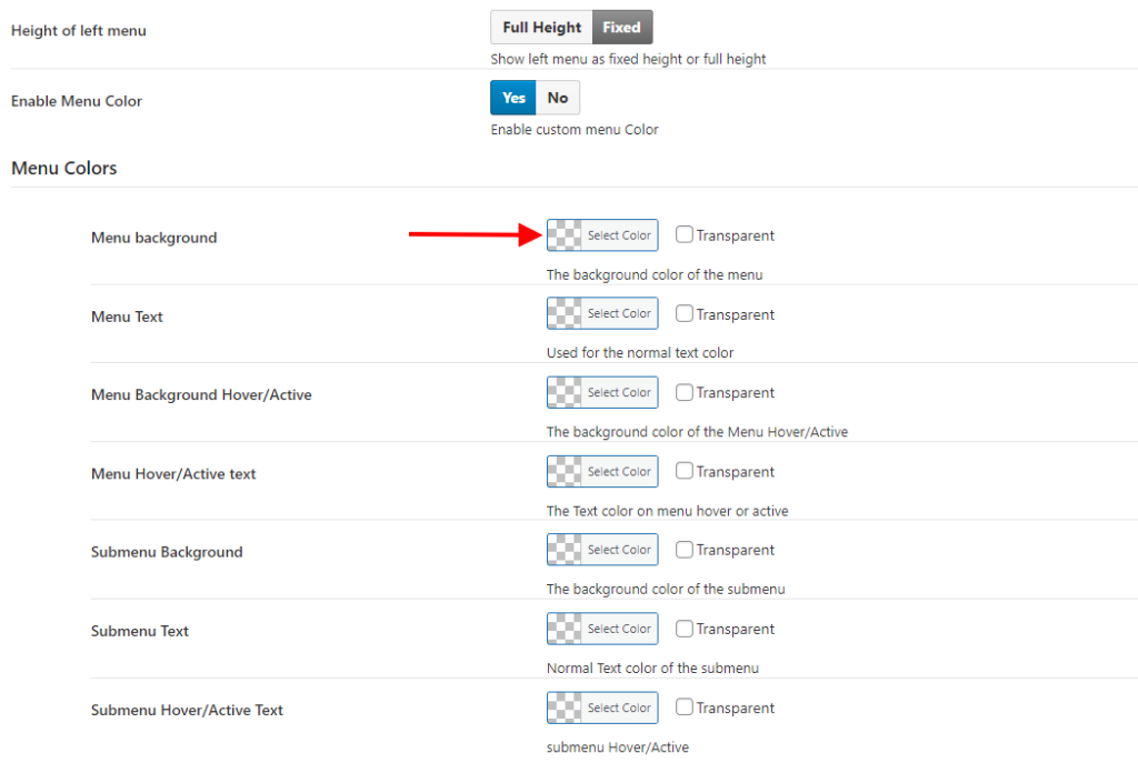 iii) Within the dropdown rendered, set the background color from the “Menu Background ” color picker