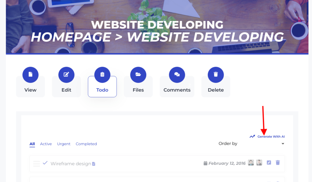 Once this is done, a todo list will be automatically generated based on the title that you have set for the project.