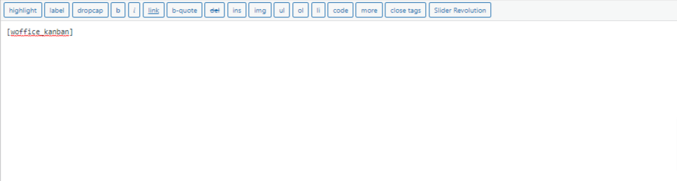 7. Add the [woffice_kanban] shortcode to the page and publish it