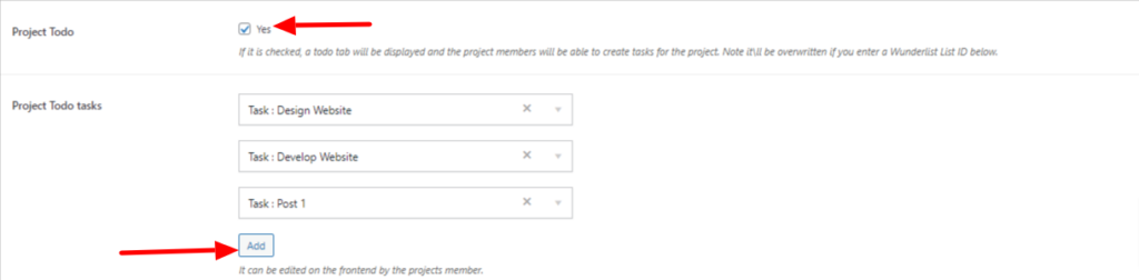 5. Within the Project options, enable the “Project Todo” option and add some Todo tasks