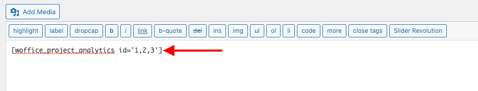 The values 1,2,3 in the above Shortcode represents the project IDs that you wish to have rendered. You can replace the values with your own Project IDs.