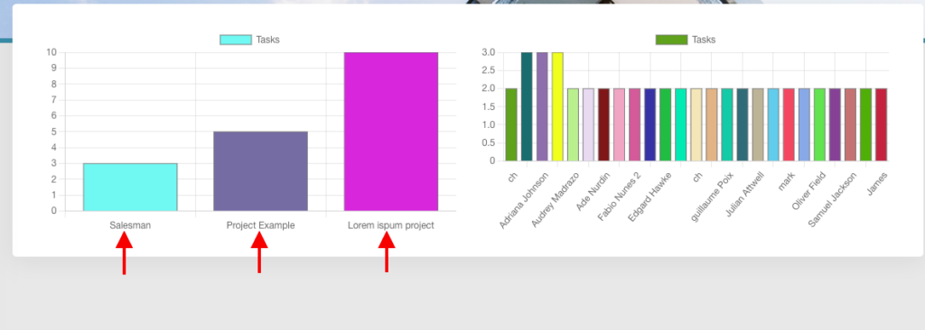 Upon viewing the page on the front-end, the chart will render the Project IDs that you specified. In our case here, we specified three projects hence will have the three projects displayed as seen below: