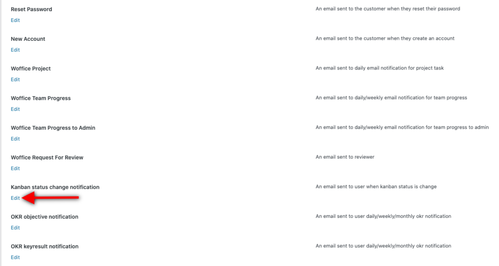 2. Click on the “Edit” link within the “Kanban status change notification”