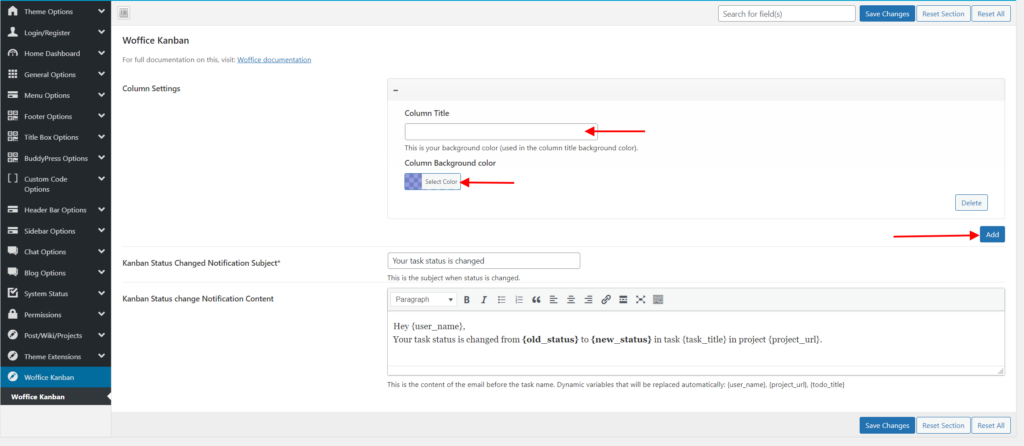 This can be achieved by clicking the “Add” button within the column settings, then adding your column title and specifying the background color of the column. Here is a screenshot on this: