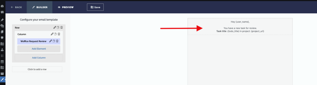 You can edit its content and styling by clicking on the pencil icon next to “Woffice Email Header”.