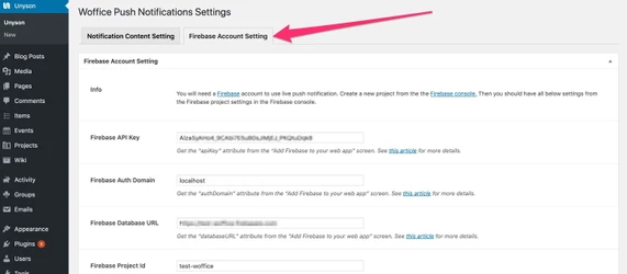 Here are the instructions to set up the Live Notifications extension.