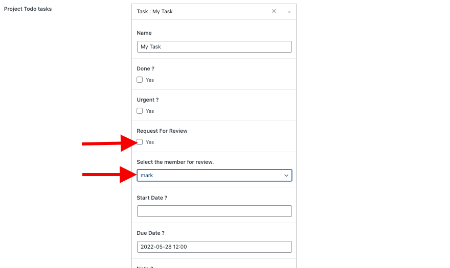 Since WOffice 4.1.6, the WOffice theme incorporates an option to request for the review of To do tasks by project members.