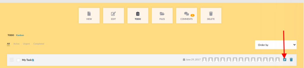2.Select a task to edit a task by clicking on the edit icon on the task.
