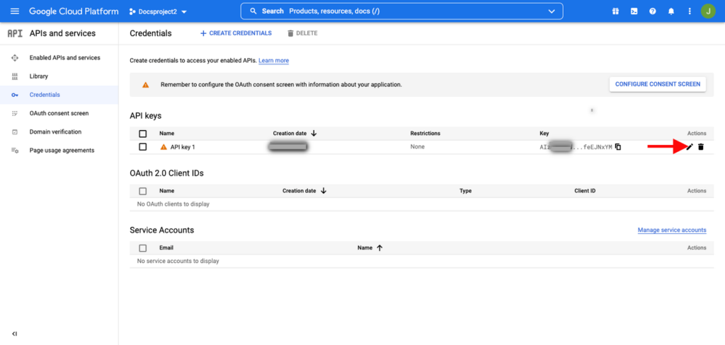7. Navigate to the Library section, search for the following APIs and have them enabled: