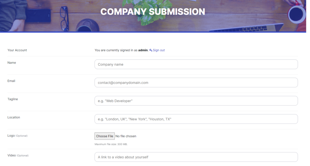 With the above carried out, upon viewing the created page, you should have a view of the company submission form from where users can submit companies from the front-end.