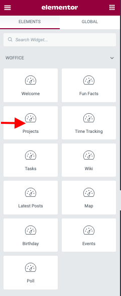 The Projects widget element is used in displayed a list of projects in a page. The widget can be used in displaying specific projects or all projects based on the set widget options.