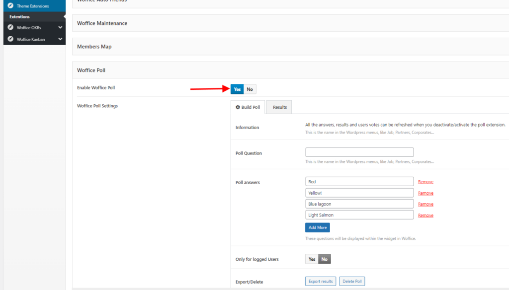 Woffice Theme comes with a widget that enables the possibility to add a poll in your Woffice site.