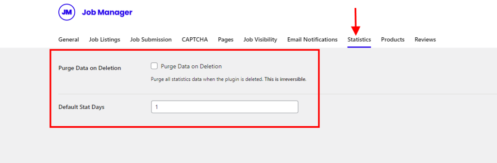 These are settings found within the Job Manager > Settings > Statistics section within the WordPress dashboard.