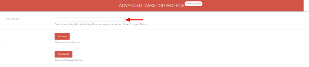 - Add your license within the Appearance > Theme Settings > Plugins > Advanced Tasks For WOffice and activate it.