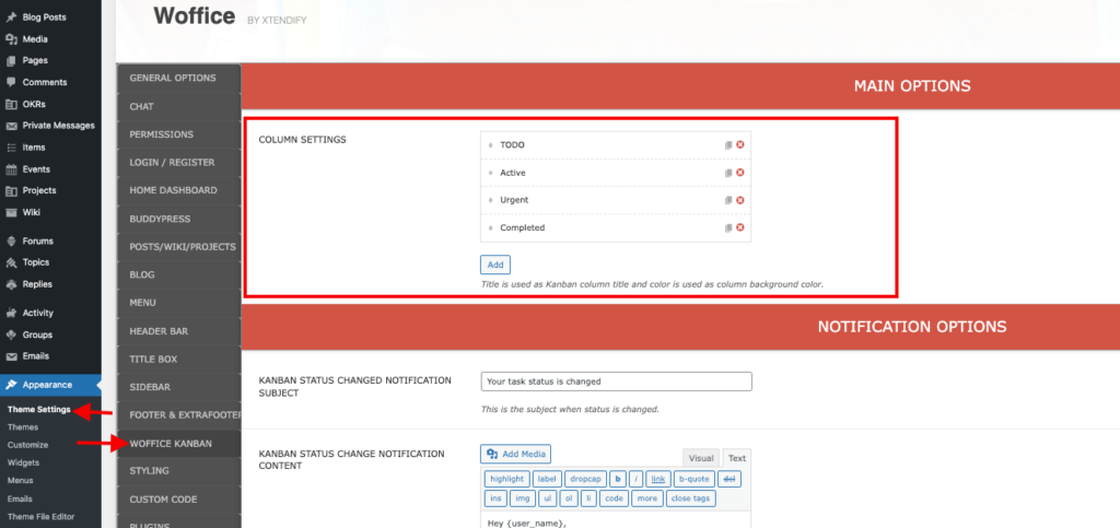 This can be achieved from the Appearance > Theme Settings > WOffice Kanban > Column Settings section.